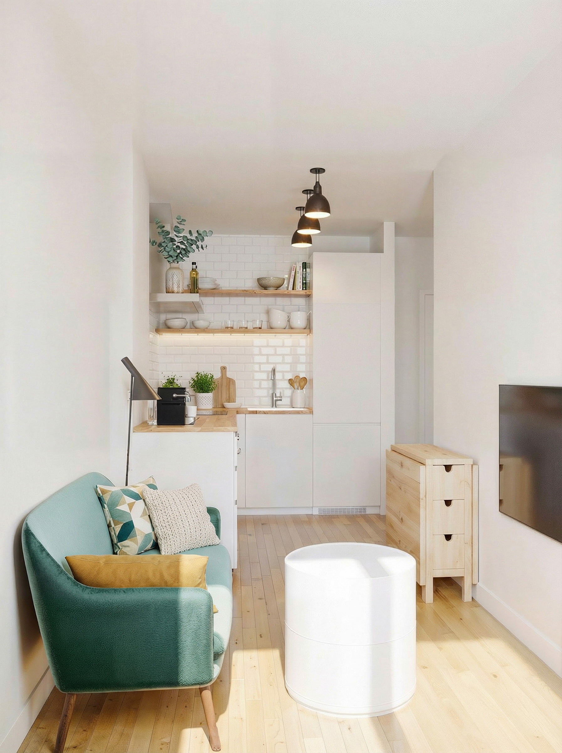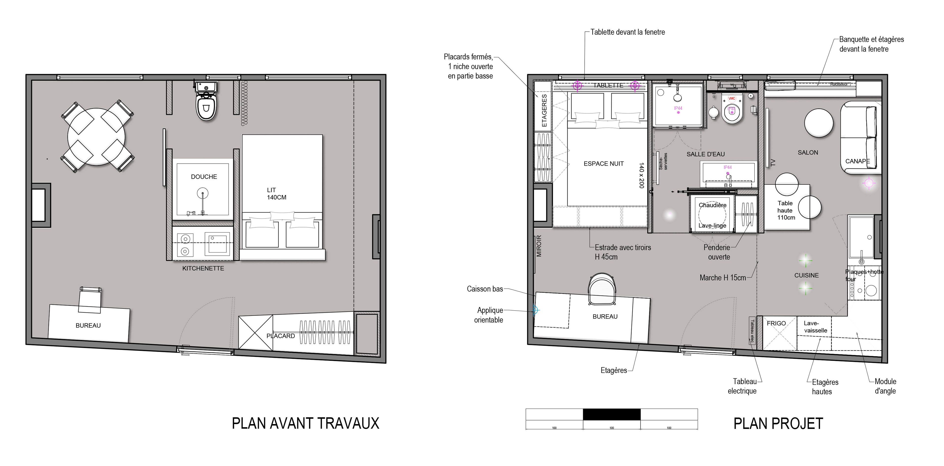 Réaménagement complet d'un studio de 28 M². Profil du locataire : un étudiant.